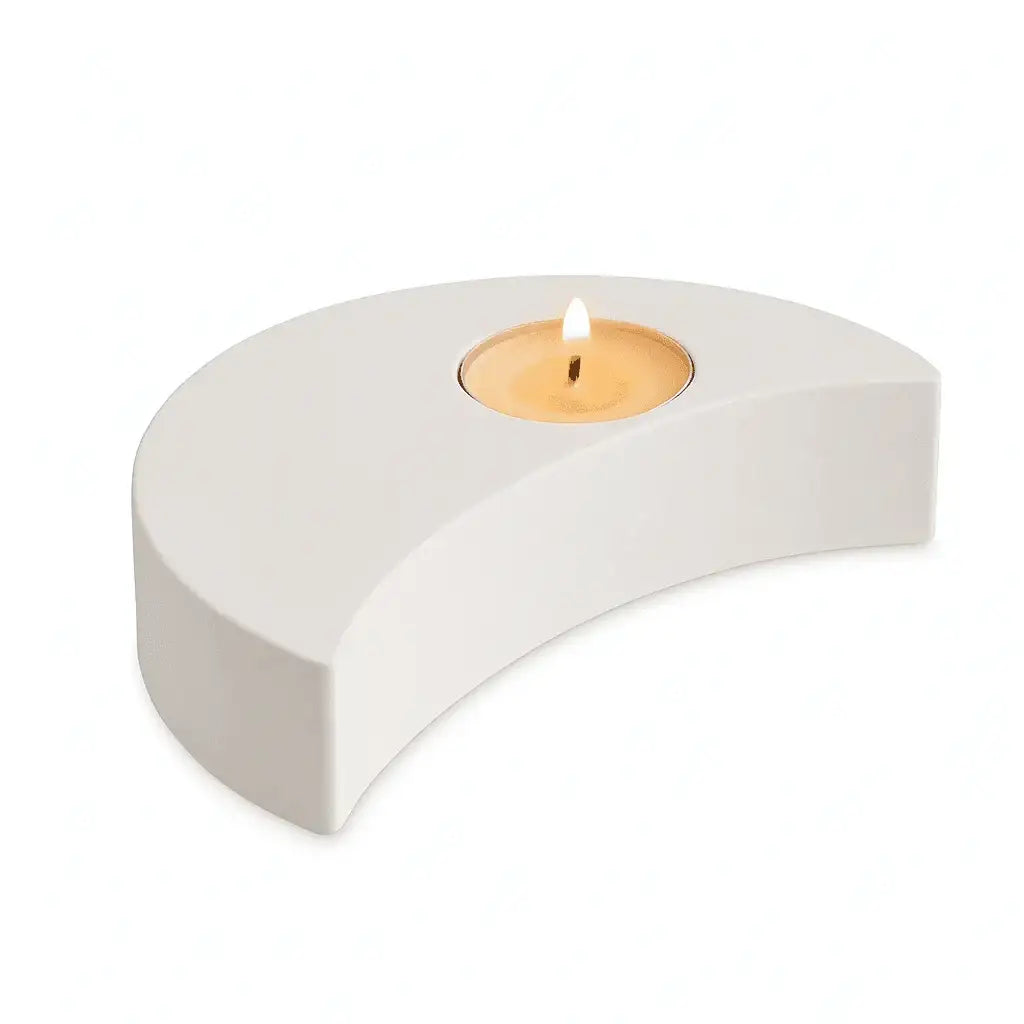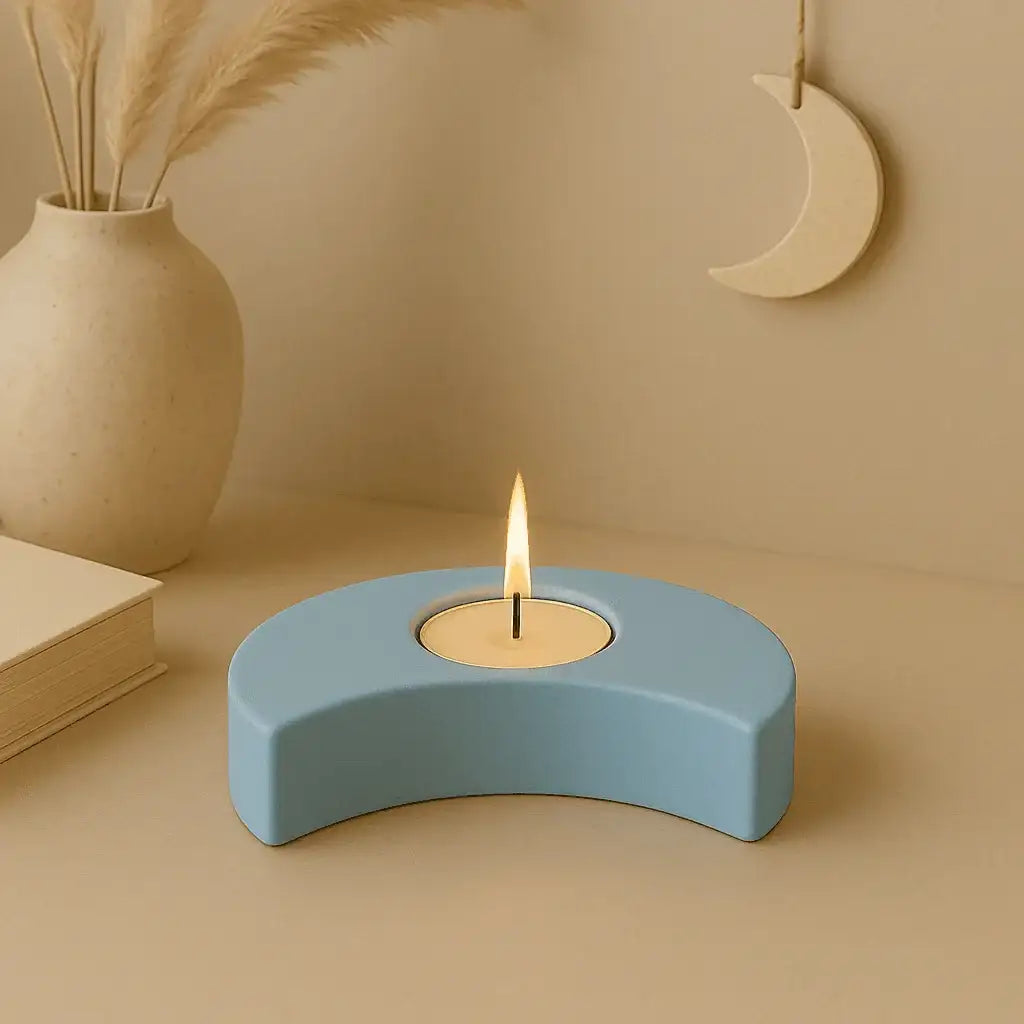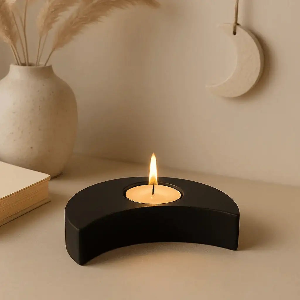 A handcrafted crescent moon tealight holder that brings warmth and coziness to your home. Inspired by the symbolism of the moon, it combines traditional craftsmanship, modern design, and the calming effect of soft candlelight.