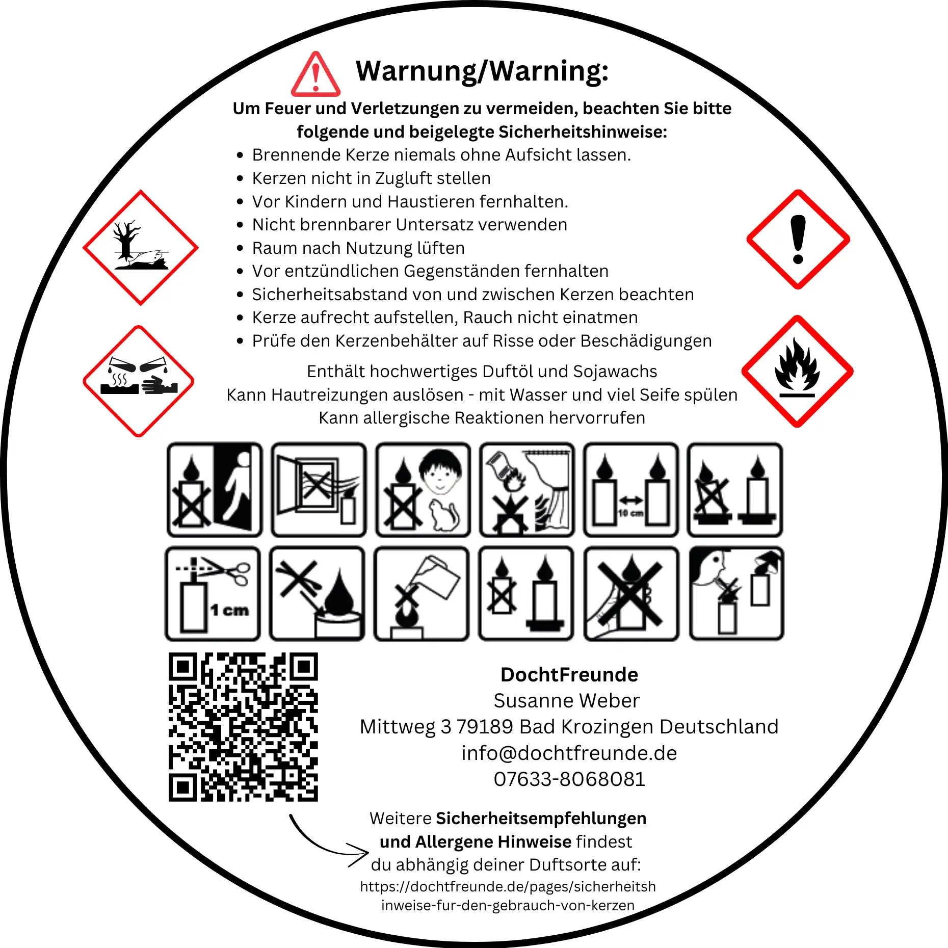 - Dochte: 2x Baumwolldocht für sauberes, gleichmäßiges Abbrennen.