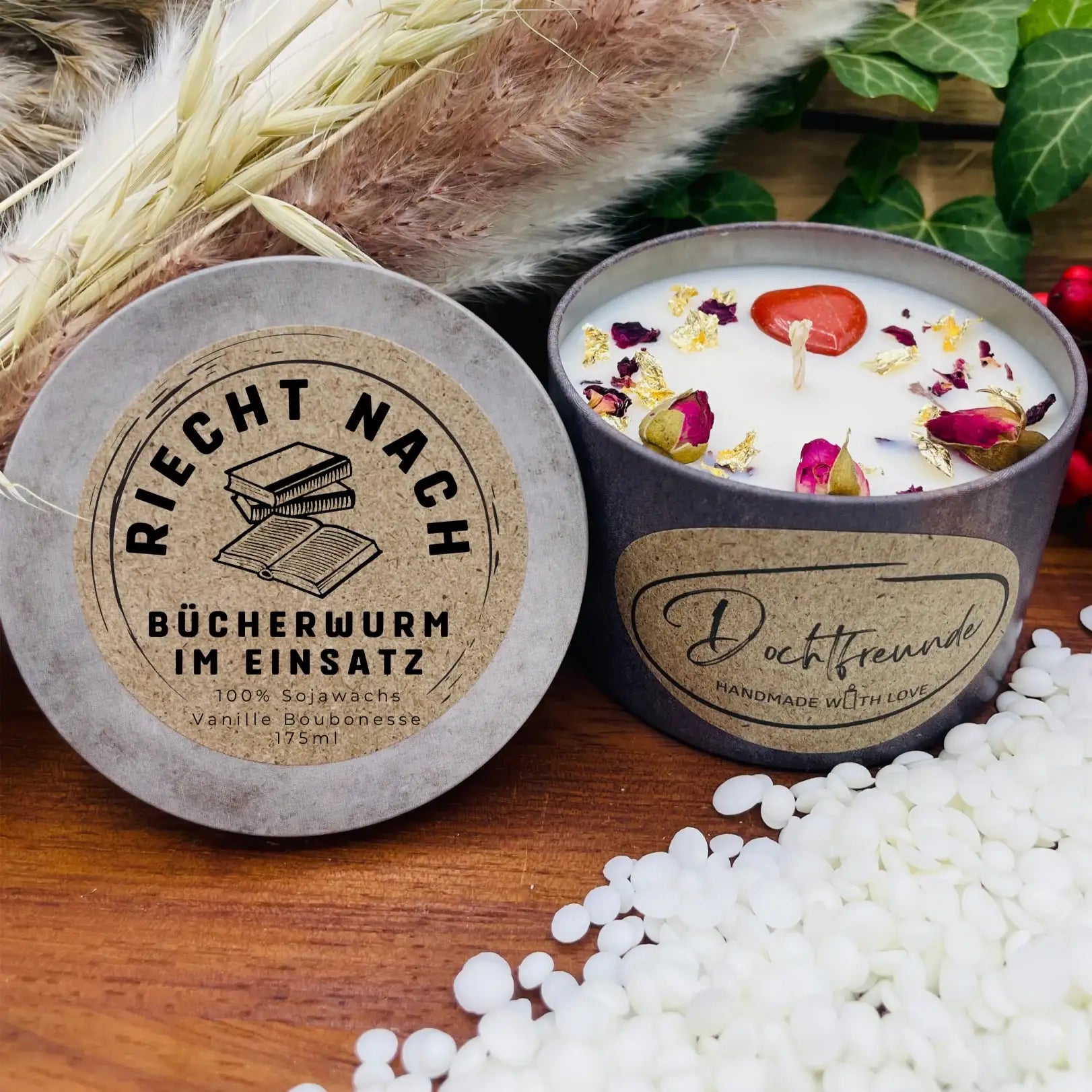 Suchst du ein besonderes Geschenk für einen leidenschaftlichen Leser? Unsere personalisierte Sojawachs-Duftkerze „Leseglück – Für den besten Bücherwurm“ von DochtFreunde ist die perfekte Überraschung! Handgemacht im Südschwarzwald, vereint diese vegane Duftkerze ein charmantes Buch-Design mit einem wohltuenden Duft – ideal als Geschenk für Bücherliebhaber, Literaturfans oder alle, die in Geschichten eintauchen.