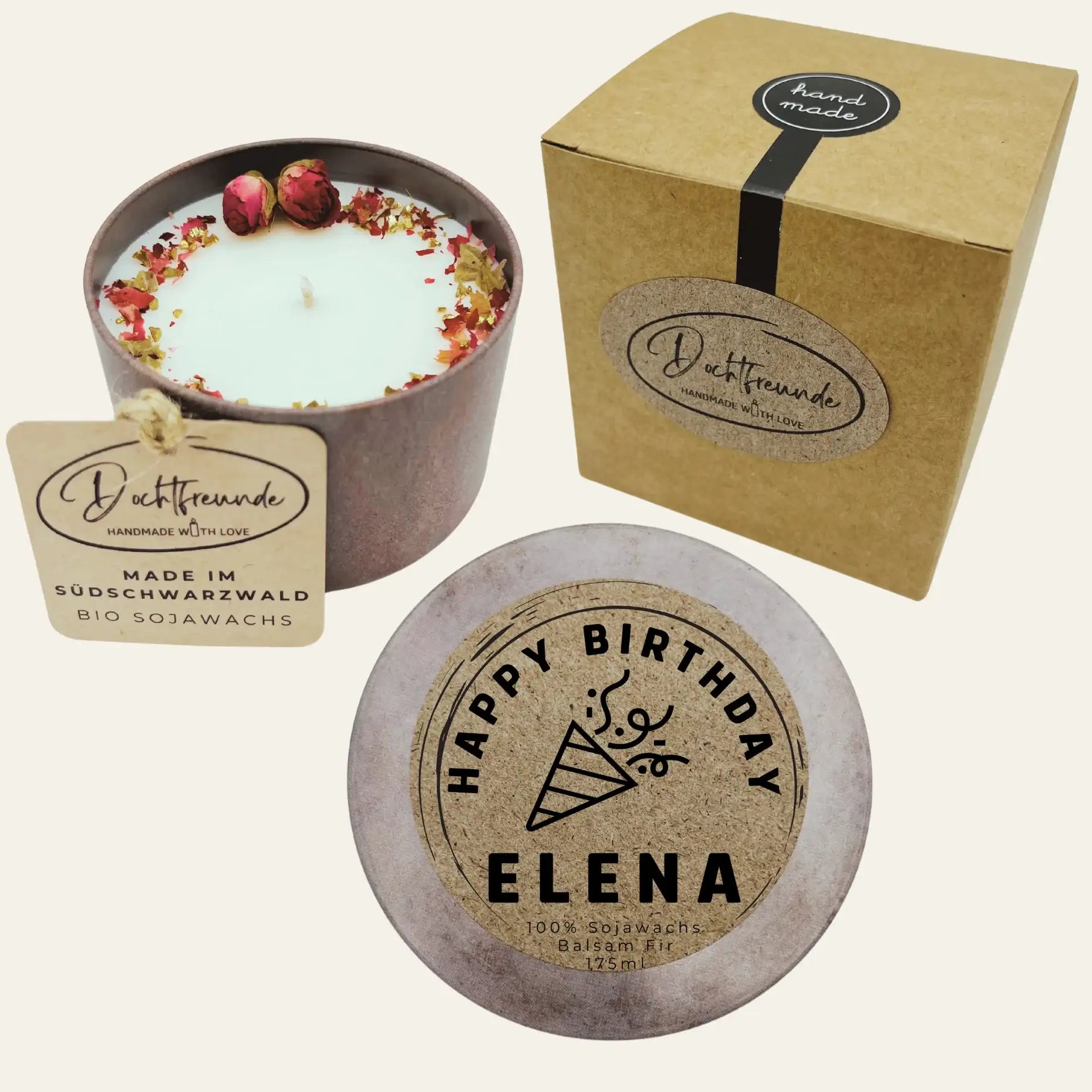 Handgemachte und personalisierte Duftkerze „Happy Birthday, Dein Name“ – Das perfekte Geburtstagsgeschenk aus dem Südschwarzwald