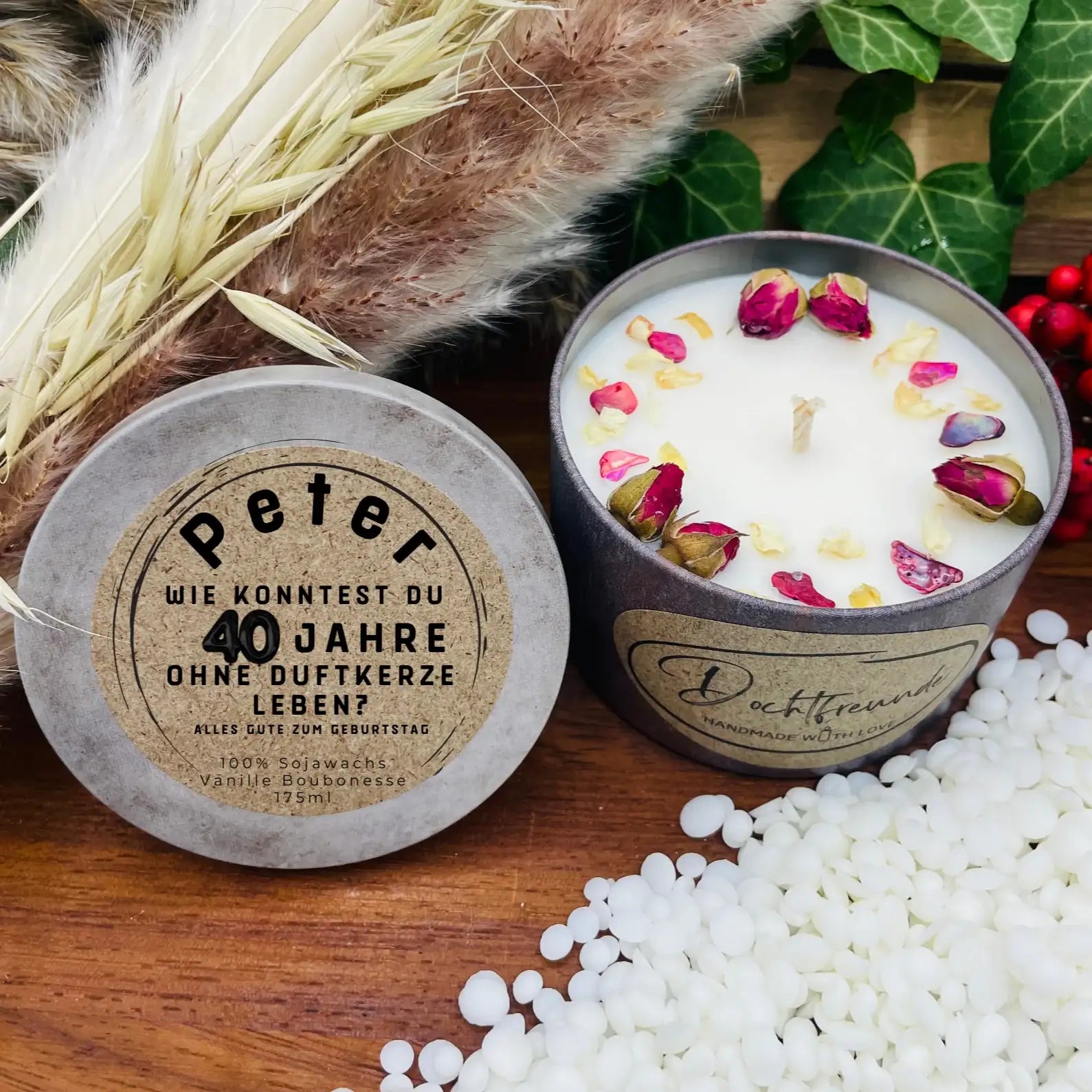 Jetzt Personalisieren Duftkerze „Wie konntest du 40 Jahre ohne Duftkerzen leben: Alles gute zum Geburtstag “ Nachhaltiges Geschenk aus dem Südschwarzwald