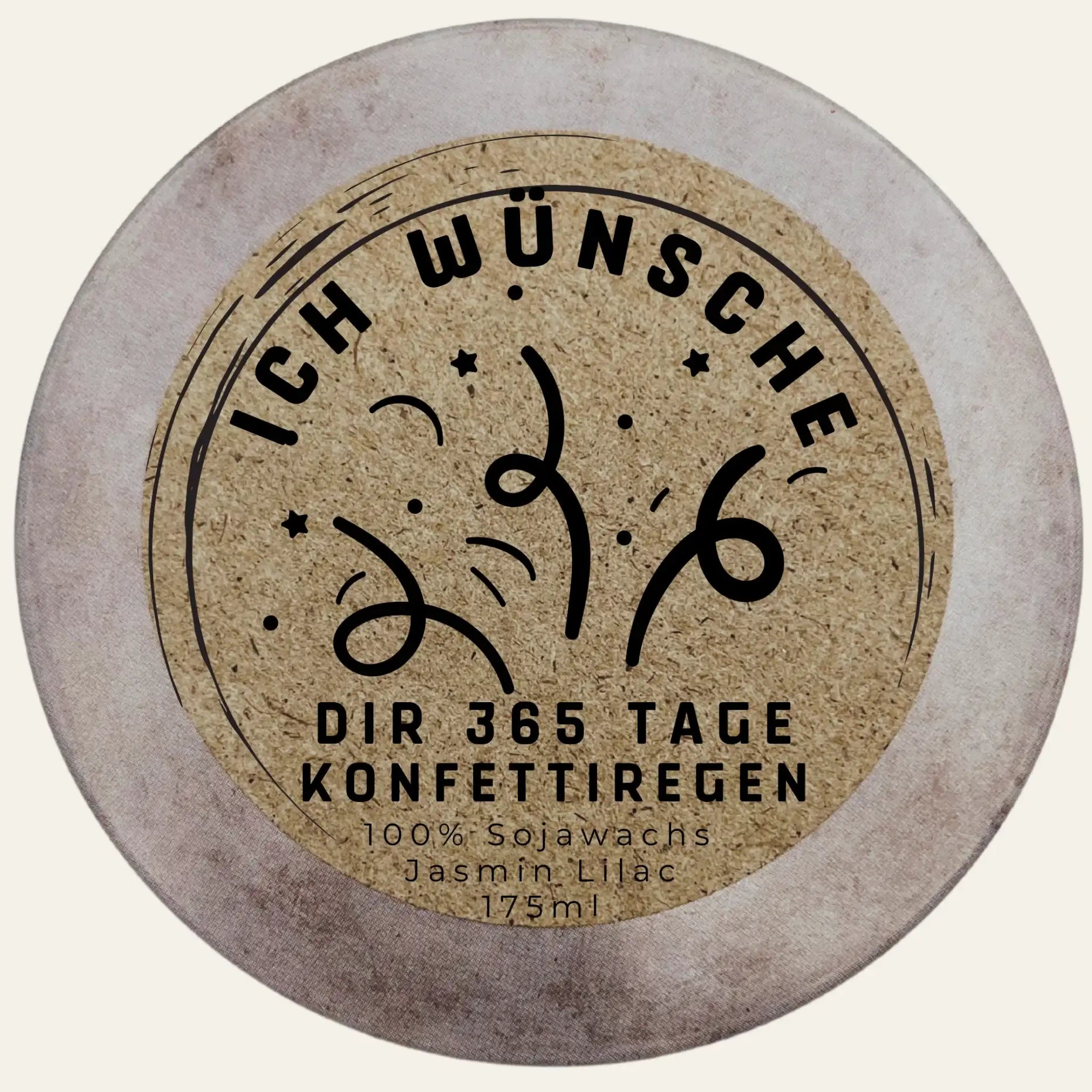 Duftkerze „Ich wünsche dir 365 Tage Konfettiregen“ – Fröhliches Geschenk für jeden Anlass
