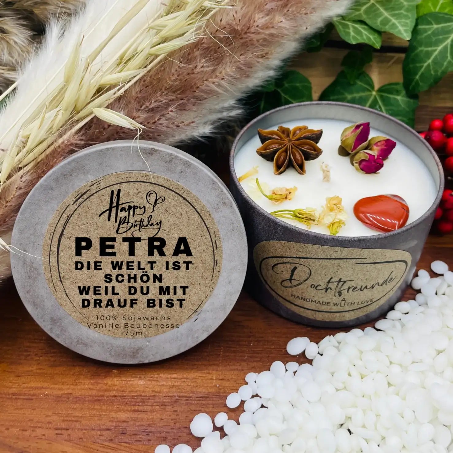 Suchst du ein herzerwärmendes Geschenk, um jemanden zum Geburtstag zu feiern? Unsere personalisierte Sojawachs-Duftkerze „Happy Birthday – Die Welt ist schön, weil du mit drauf bist“ von DochtFreunde ist die perfekte Überraschung! Handgemacht im Südschwarzwald, vereint diese vegane Duftkerze ein fröhliches Design mit einem wohltuenden Duft – ideal, um einem besonderen Menschen zu zeigen, wie sehr er geschätzt wird.