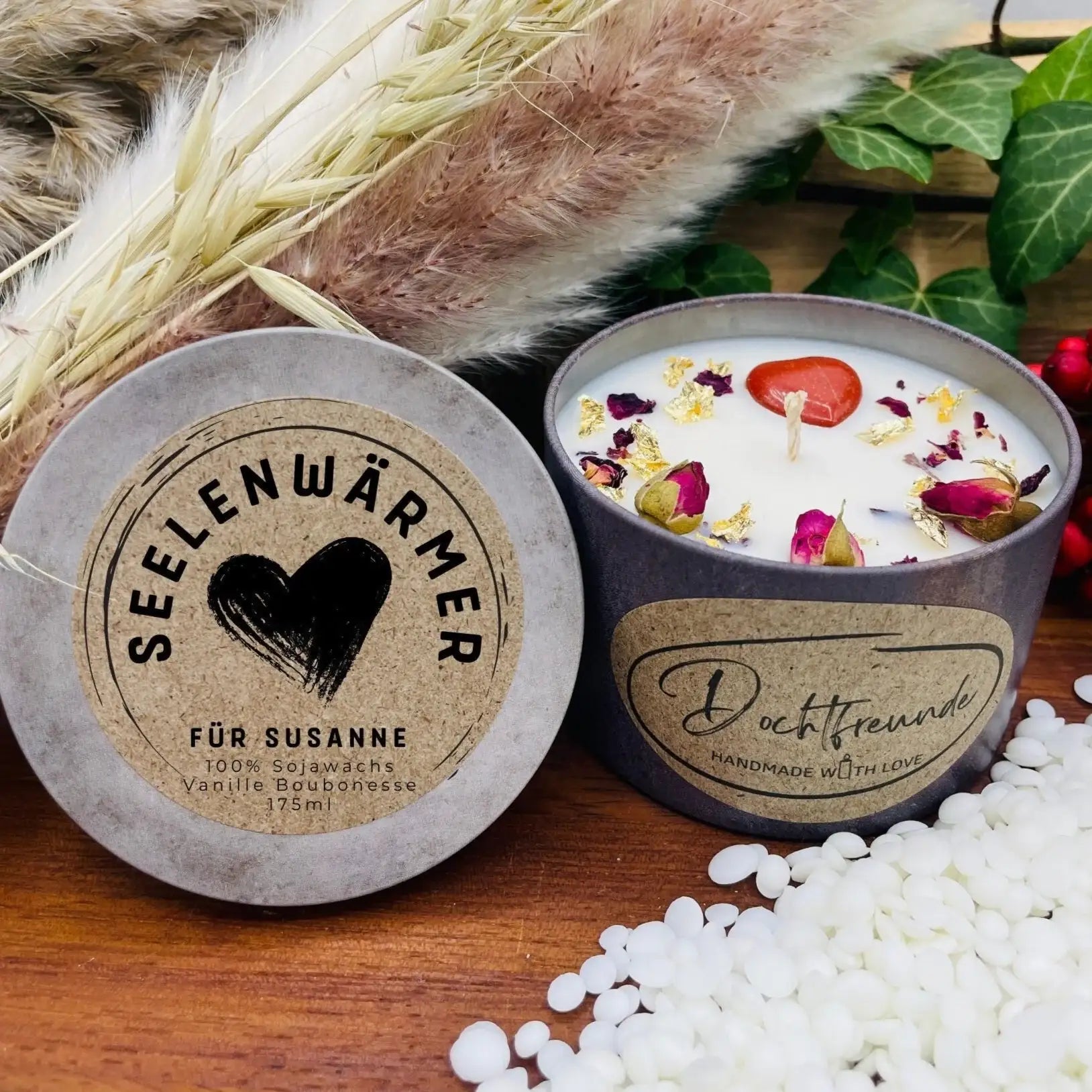 Suchst du ein Geschenk, das Herz und Seele berührt? Unsere personalisierte Sojawachs-Duftkerze „Seelenwärmer“ von DochtFreunde ist die perfekte Überraschung! Handgemacht im Südschwarzwald, vereint diese vegane Duftkerze ein beruhigendes Design mit einem wohltuenden Duft – ideal als Geschenk für liebe Menschen, die Trost, Wärme oder einfach einen Moment der Entspannung verdienen.